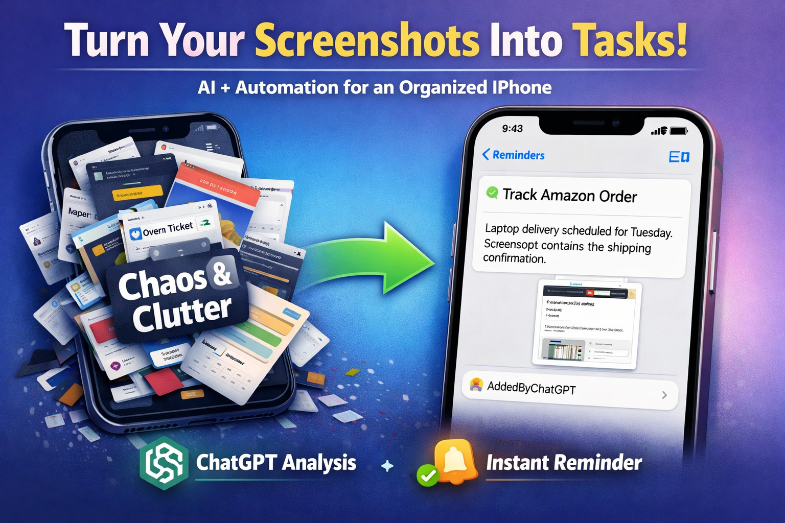 With a simple iPhone Shortcut connected to ChatGPT, your screenshots can instantly become organized tasks. Instead of sitting quietly in your camera roll, the screenshot is analyzed, given a title and summary, and turned into a reminder with the image attached.